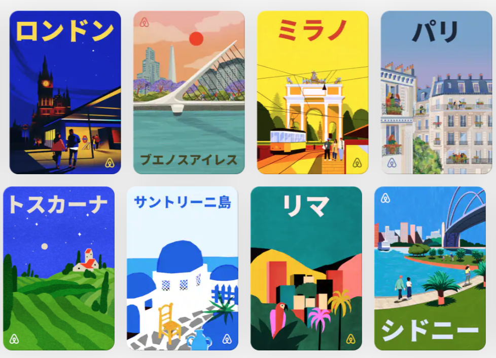 - Airbnbで滞在した場所(スタンプ表示) など