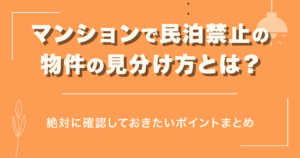 物件によっては、オーナーが民泊をNGとしていたり、不動産会社自体が民泊を扱わない方針だったりすることも。